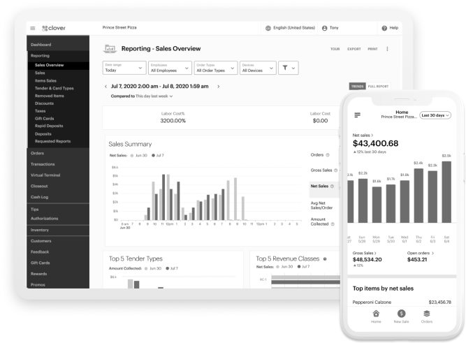 Point-of-Sale Back Office, Inventory, Employees, Pricing, Virtual Terminal, Applications, Sales Dashboard